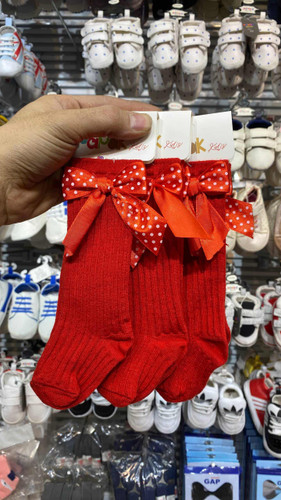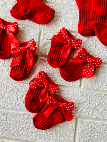 جوراب وارداتی کبریتی پاپیونی تک رنگ قرمز