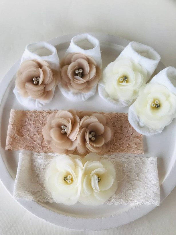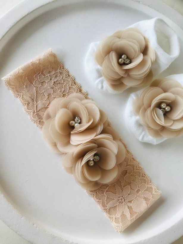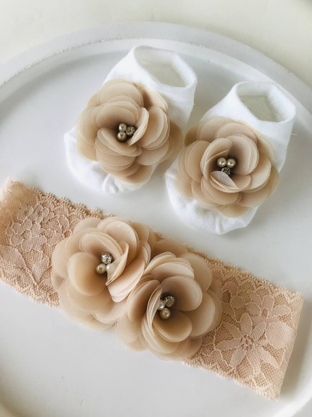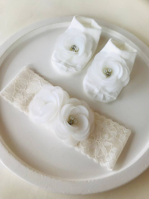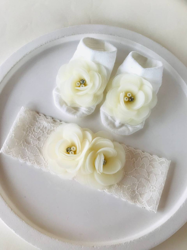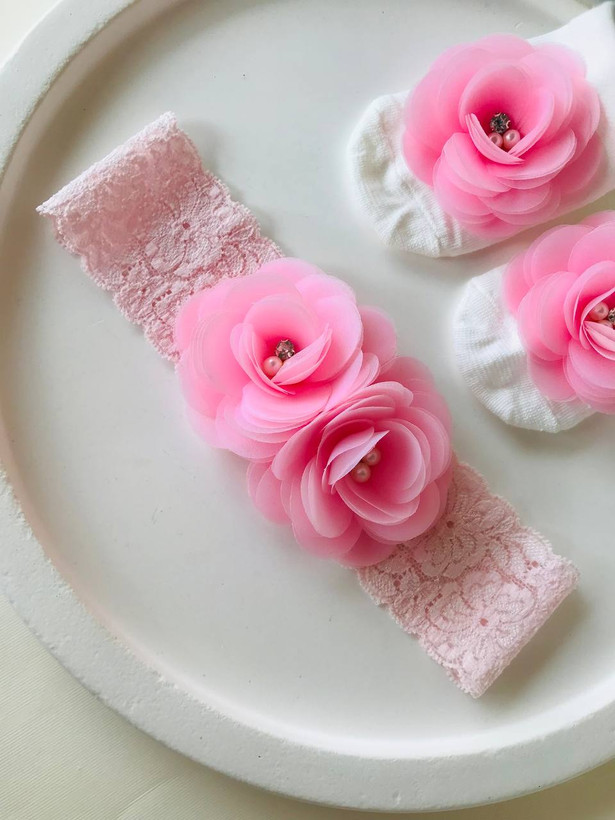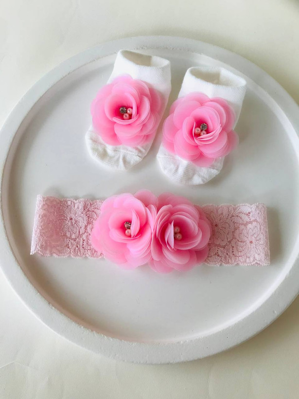 ست مجلسی هدبند و جوراب گل دار