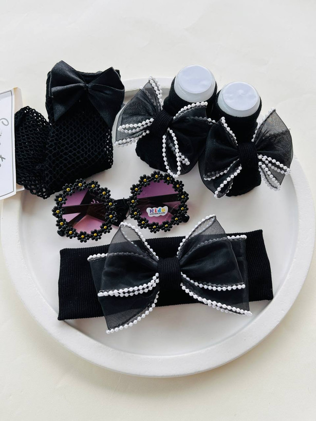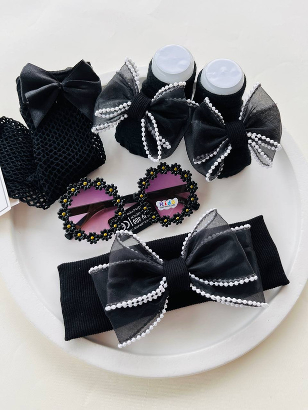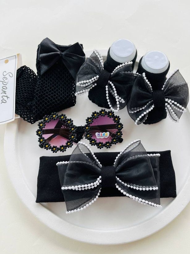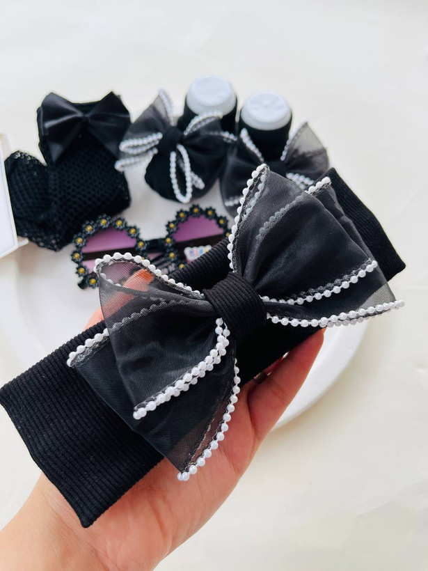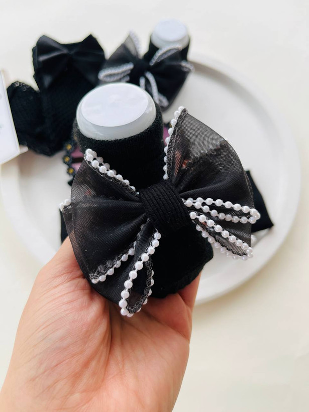 ست هدبند و پاپوش حریر مرواریدی مشکی