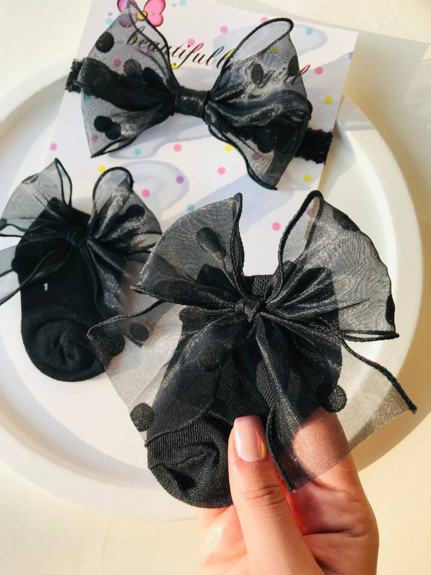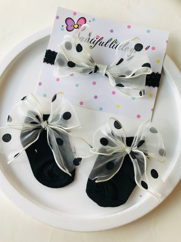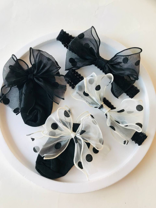 ست هدبند و جوراب پاپیونی حریر خالخالی